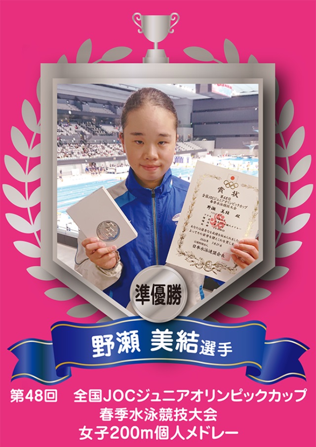 2025年度 全国JOCジュニアオリンピックカップ春季水泳競技大会 野瀬さん「準優勝」